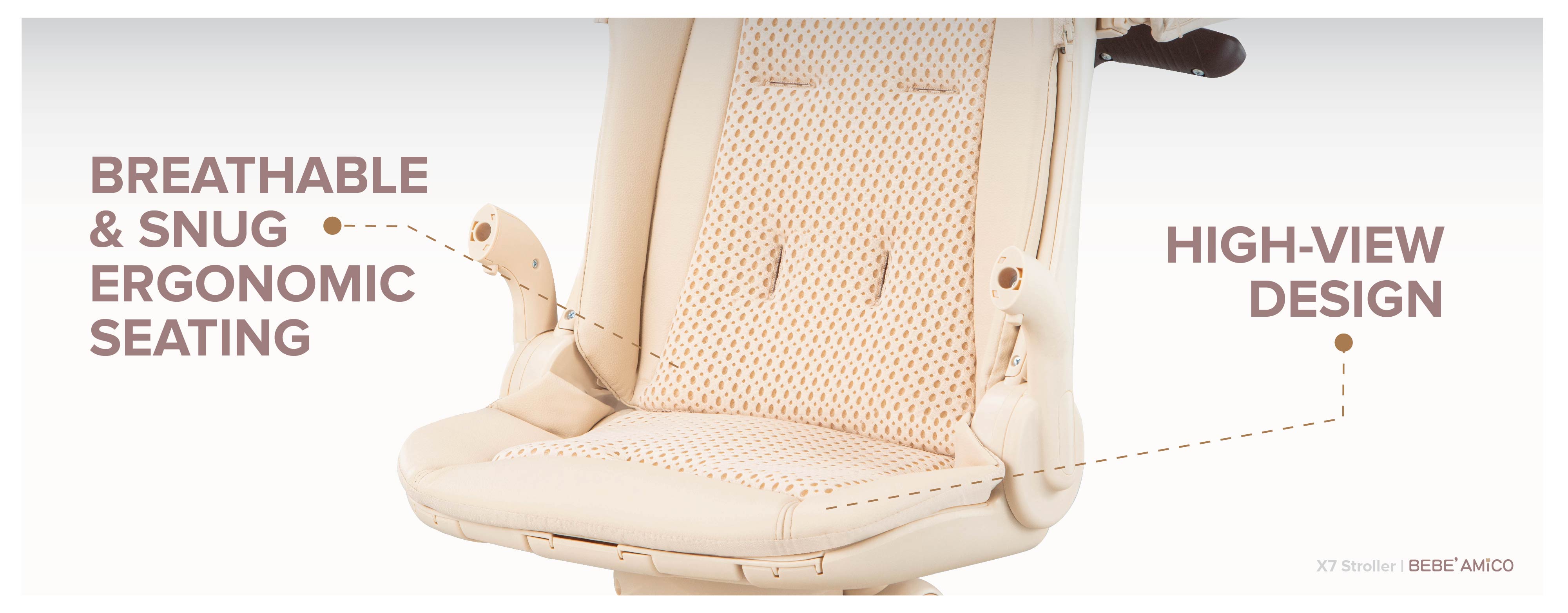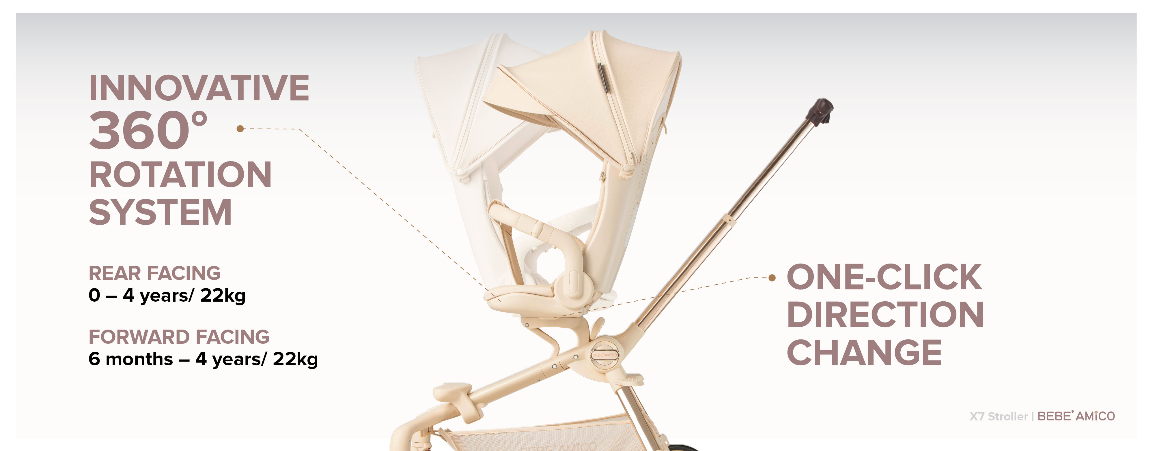 - 360° Rotating Seat: One-touch switch between parent-facing and world-facing.