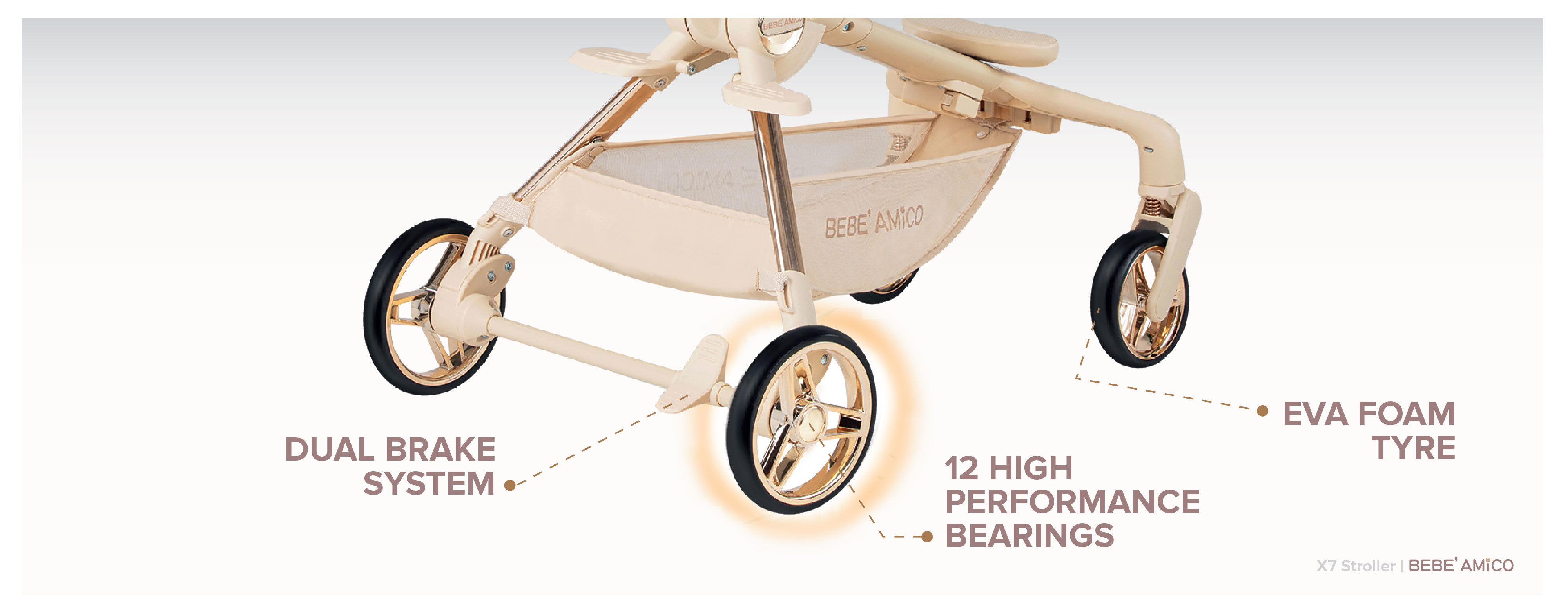 - Safety & Convenience: Five-point harness, spacious storage, dual brakes, and quick-release wheels.