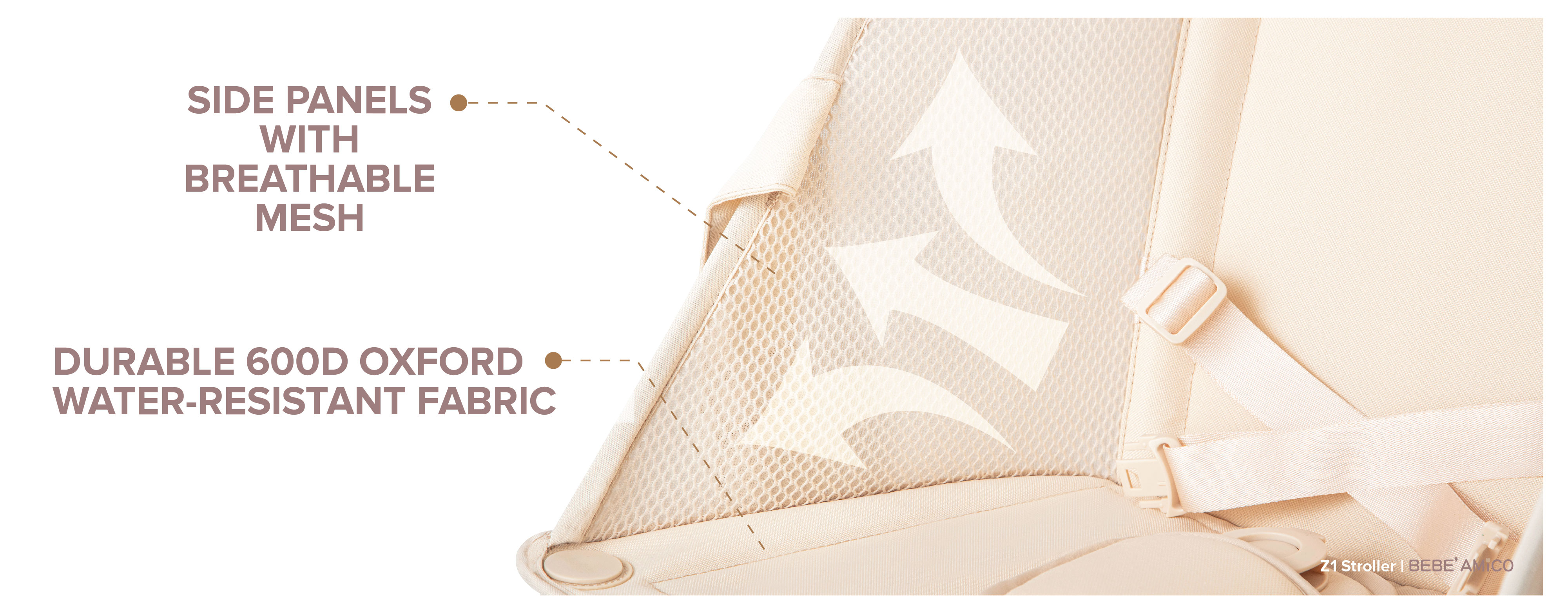 - UPF50+ Sun Canopy: Water-repellent, UV-resistant, and adjustable for optimal sun protection.